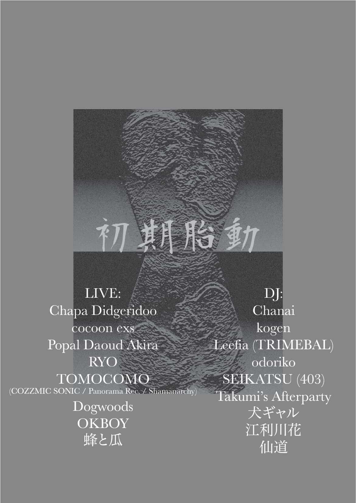 主催のJUN JIKOOHAとTOMOCOMOは、それぞれアナログマシーンによるアシッド・ライブと、ユーフォリックなライブを展開!そしてレギュラーメンバーDADAは通を唸らせるアシッドトラックスをプレイ!